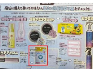 『寝坊しても大丈夫!? 起きて10分シミュレーション』の「寝坊に備えて持っておきたい、ビジュ用便利グッズをチェック!!」(P67)にて紹介されています。