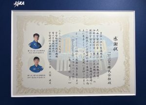 JAXA大西卓哉宇宙飛行士より感謝状を拝受いたしました!