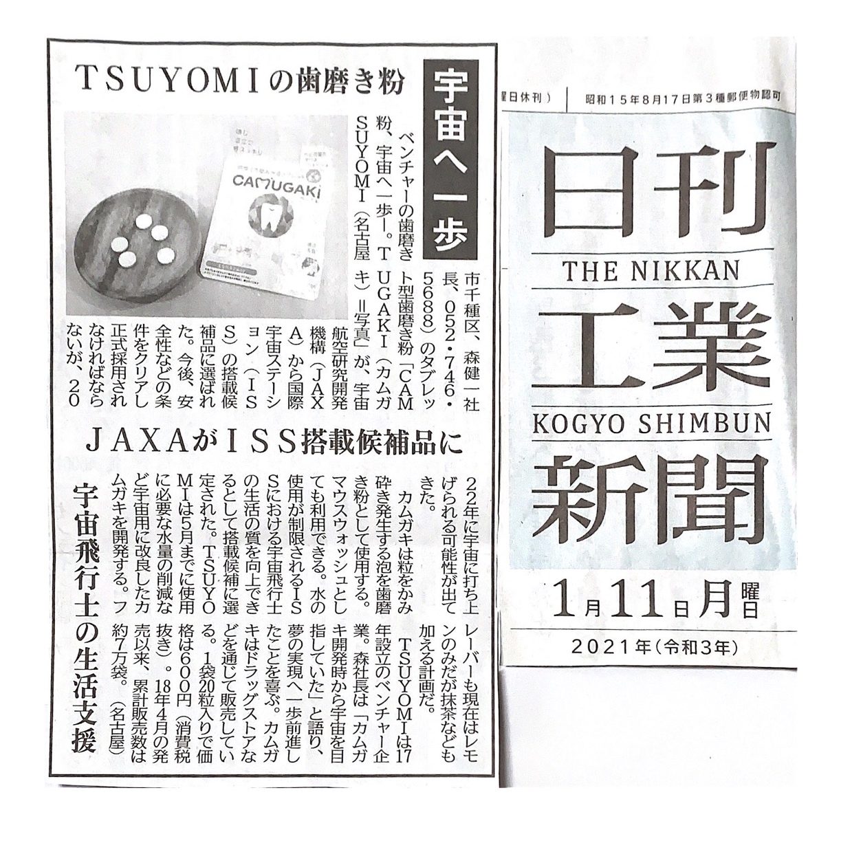 「日刊工業新聞」にJAXA・国際宇宙ステーション(ISS)搭載候補品として選定について掲載していただきました。