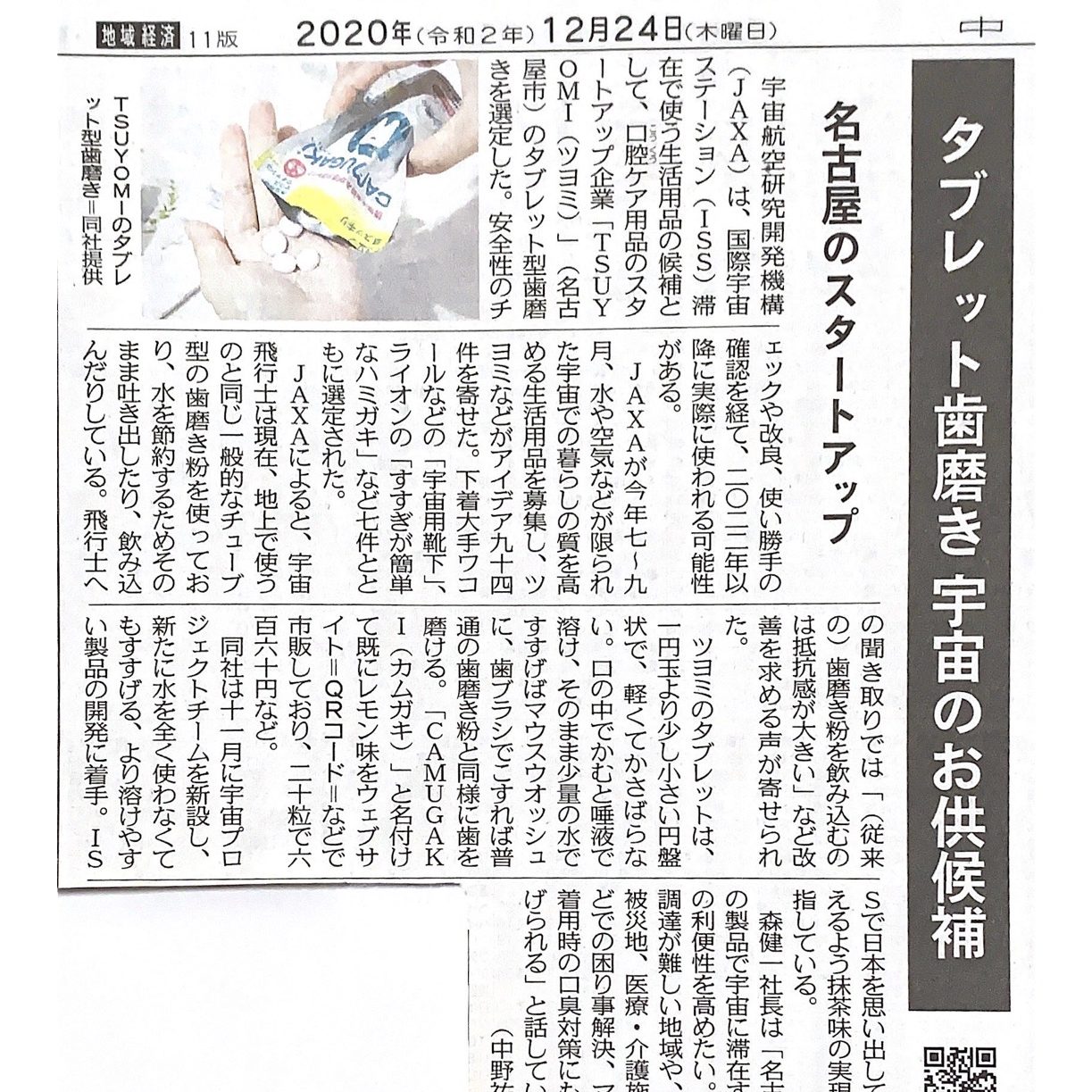 「タブレット型ハミガキ」がJAXA・国際宇宙ステーション(ISS)搭載候補品として選定