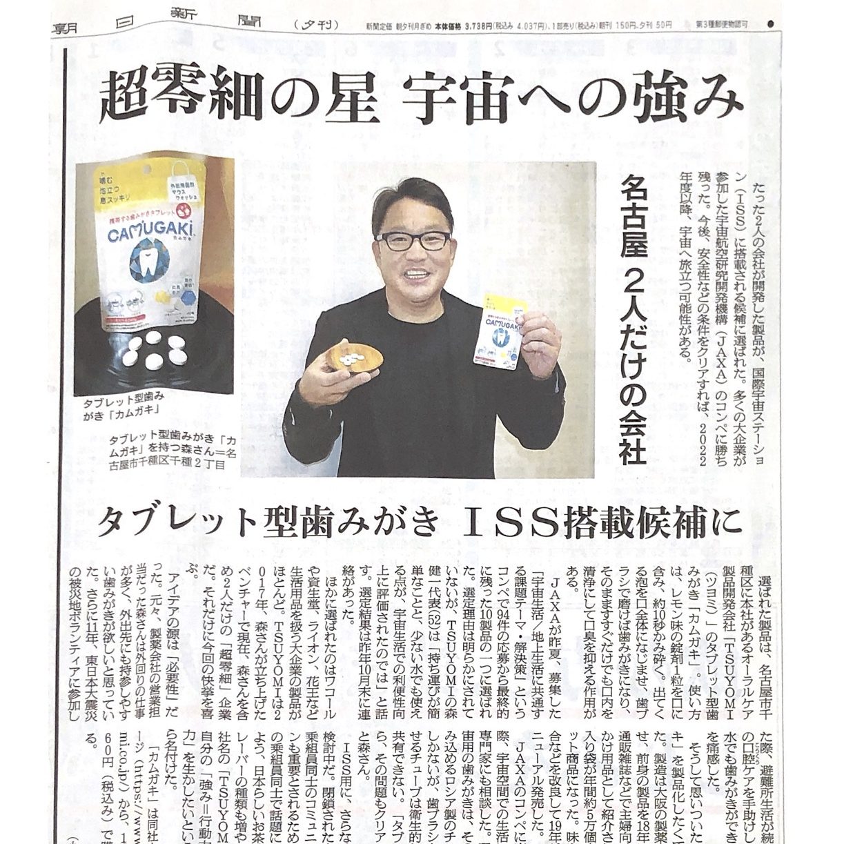 「朝日新聞」にJAXA・国際宇宙ステーション(ISS)搭載候補品として選定について掲載していただきました。